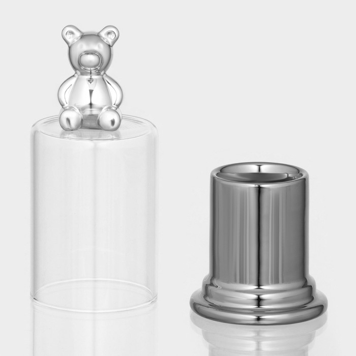 Подставка керамическая под зубочистки с крышкой «Стильный мишка», 7×7×15 см