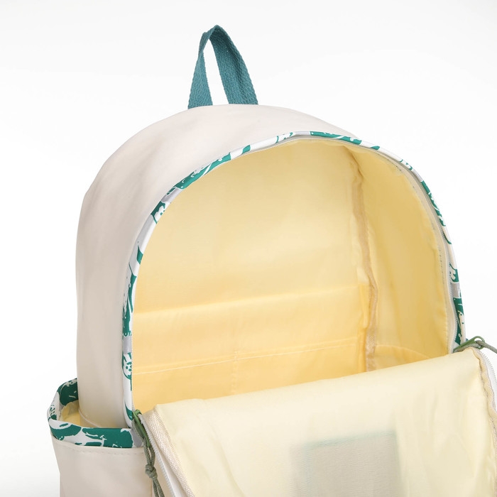 Рюкзак школьный из текстиля, 4 кармана, цвет белый/зелёный