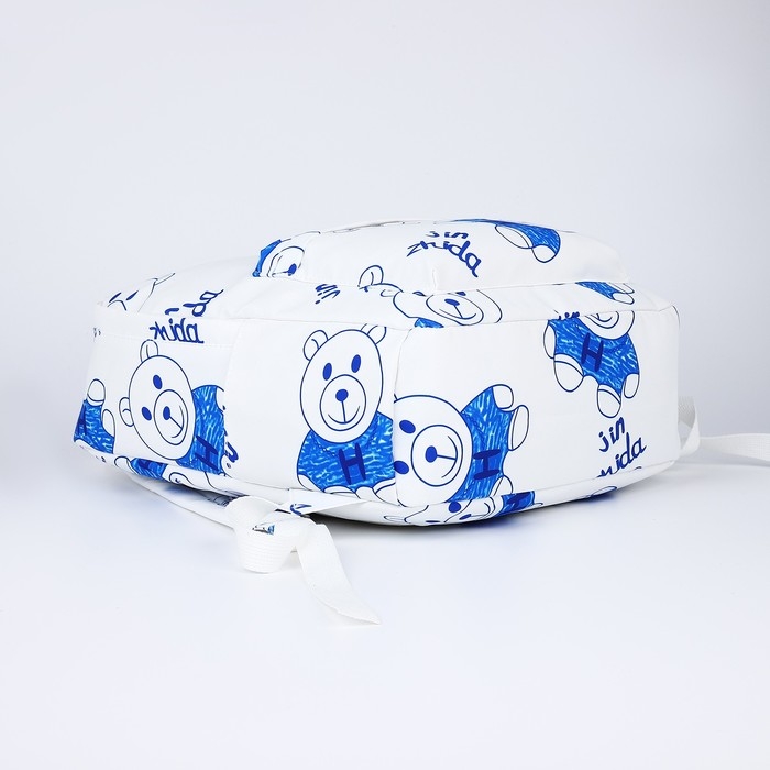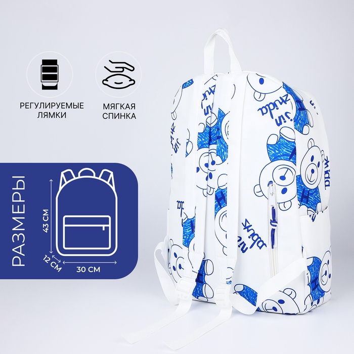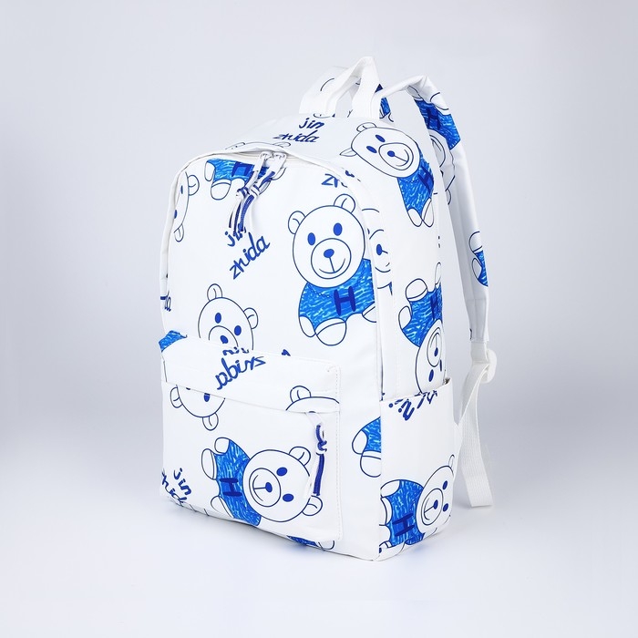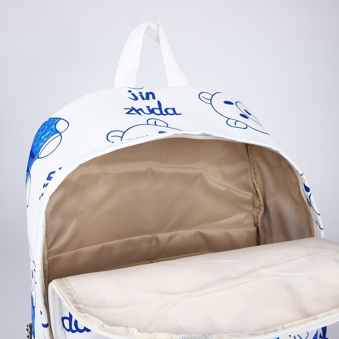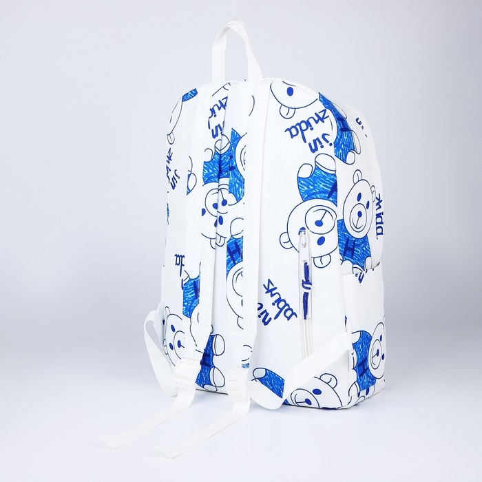 Рюкзак школьный на молнии из текстиля, 4 кармана, цвет белый/синий