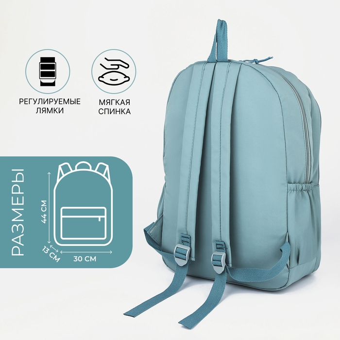 Рюкзак школьный из текстиля на молнии, 3 кармана, цвет бирюзовый