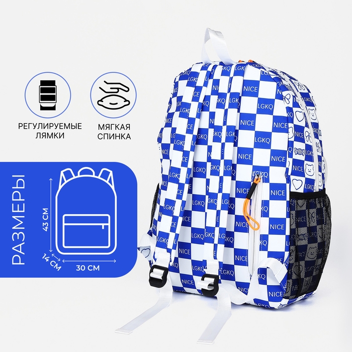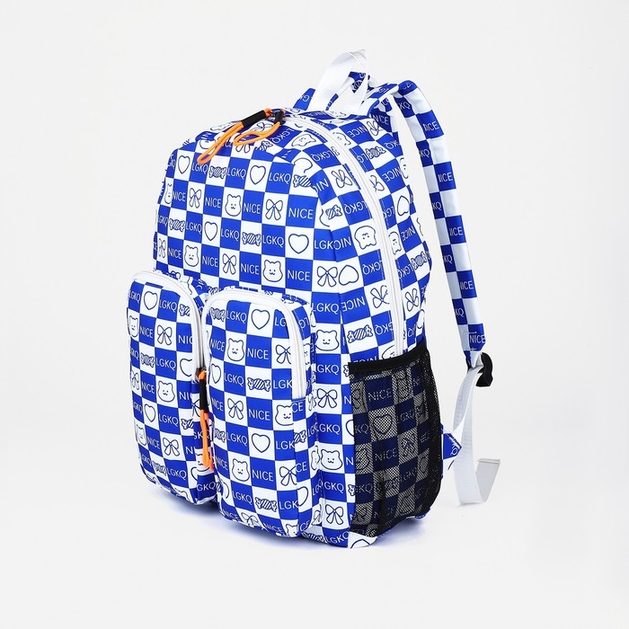 Рюкзак школьный из текстиля на молнии, 5 карманов, цвет синий