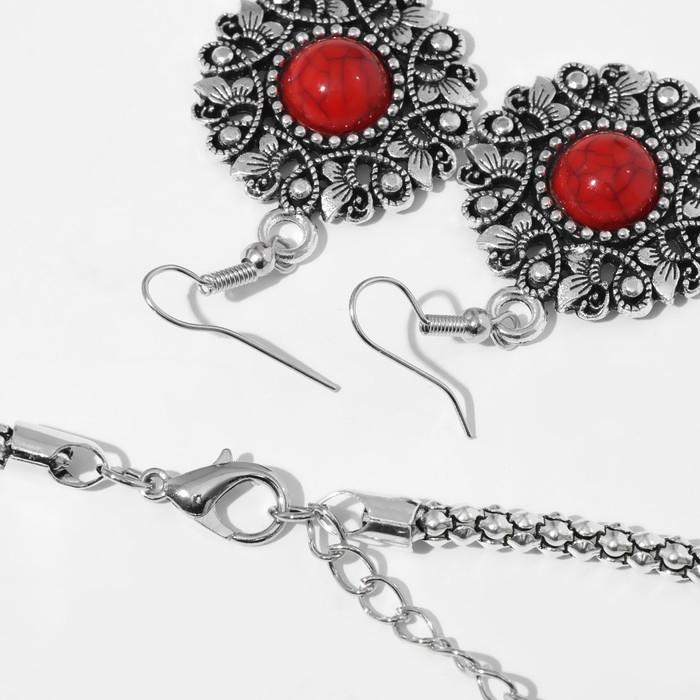 Набор 2 предмета: серьги, колье «Индия», цвет красный в чернёном серебре, 52 см