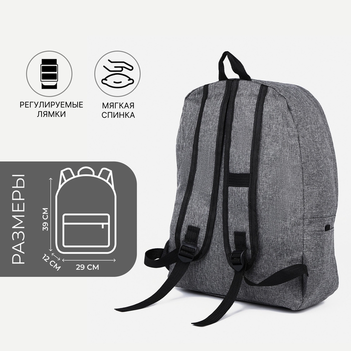 Рюкзак школьный из текстиля на молнии, 3 кармана, цвет серый