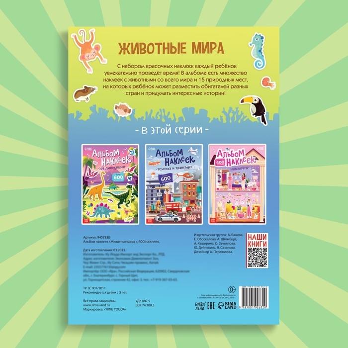 С этим альбомом каждый ребёнок увлекательно проведёт время! Внутри вы найдёте множество красочных наклеек с животными со всего мира, а также 15 локаций для их размещения.