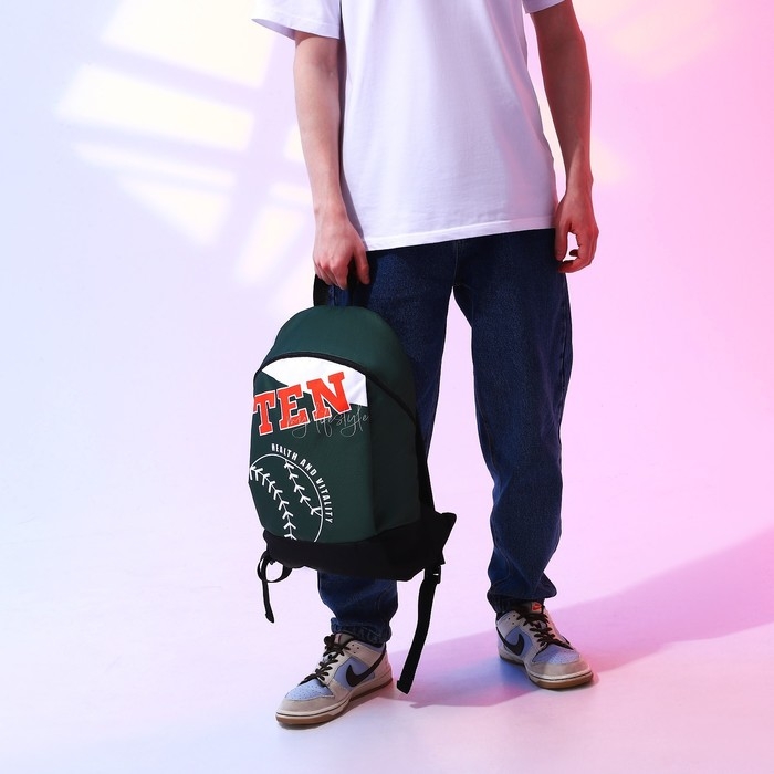 Рюкзак школьный текстильный Tennis, 46х30х10 см, вертикальный карман, цвет зелёный