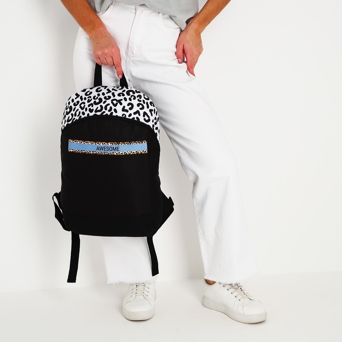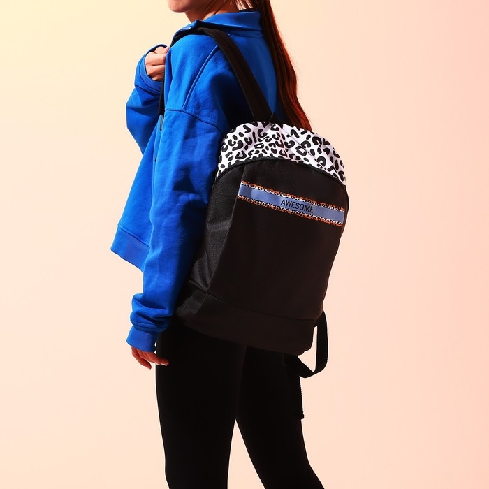 Рюкзак школьный текстильный Awesome, 46х30х10 см, вертикальный карман, цвет чёрный