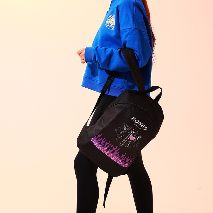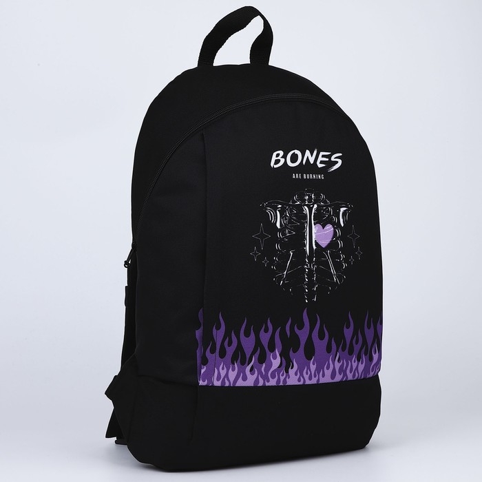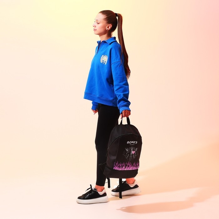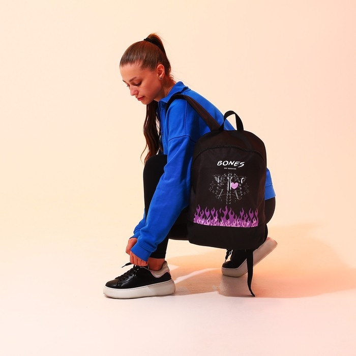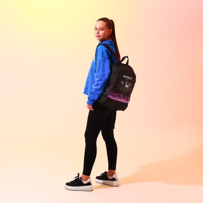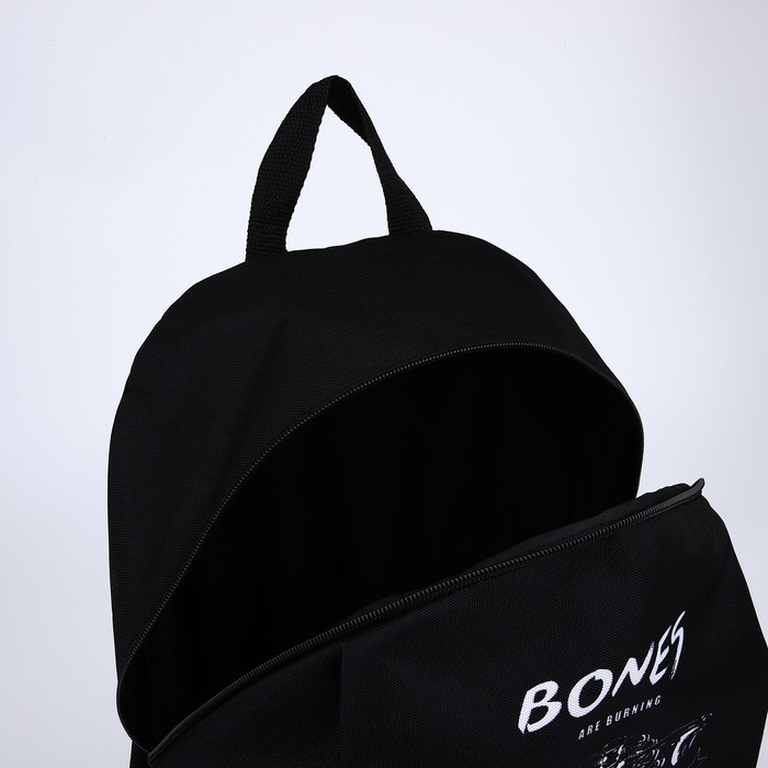 Рюкзак школьный текстильный BONES, 46х30х10 см, вертикальный карман, цвет чёрный