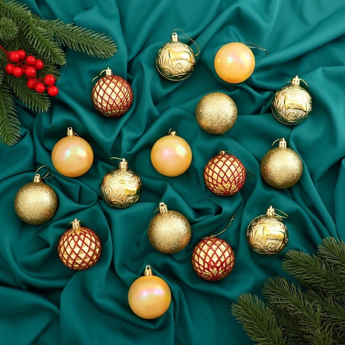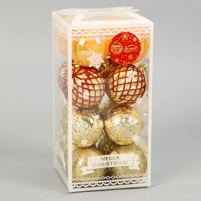 Набор шаров пластик d-6 см, 16 шт "Мелодия" грани глянец, золото