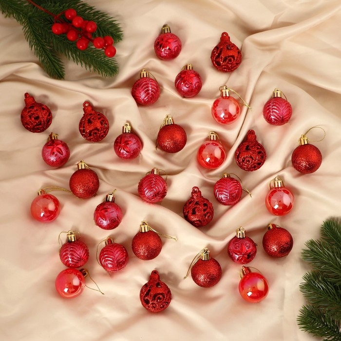 Набор шаров пластик d-4 см, 30 шт "Мелодия" орнамент, красный