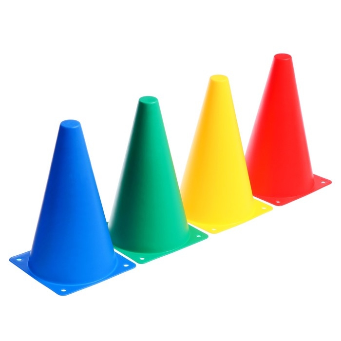 - Яркие конусы выполнены в 4 цветах и хорошо заметны на любой спортивной площадке.