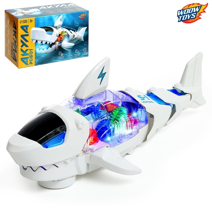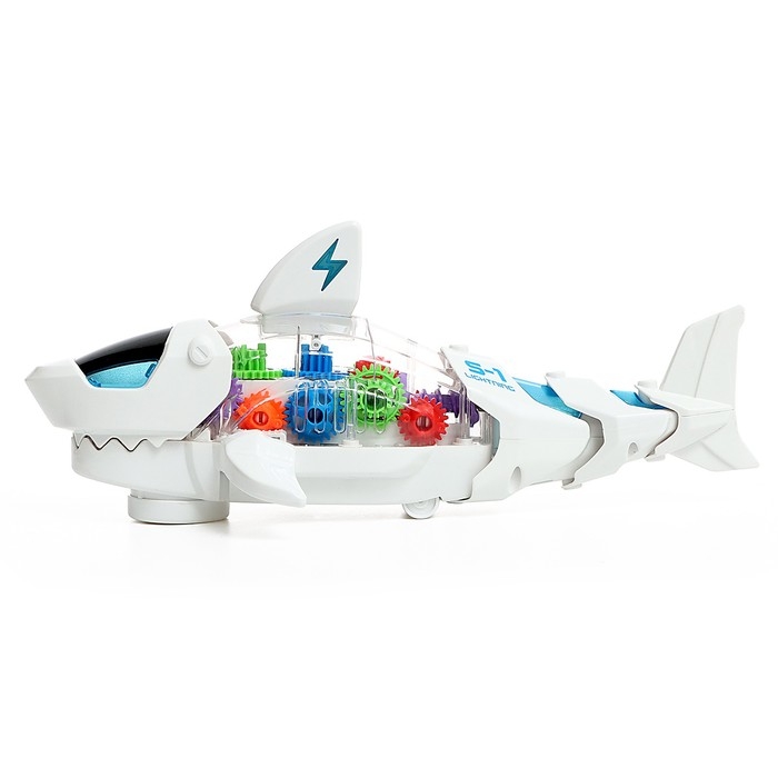 Акула «Шестерёнки», световые и звуковые эффекты, подвижные элементы, работает от батареек, цвет белый