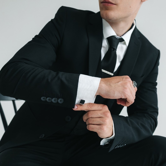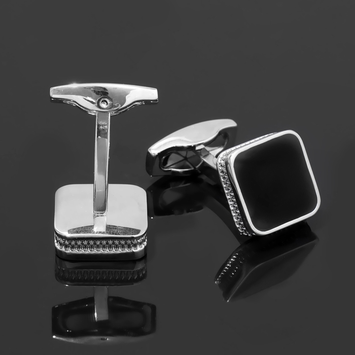 Запонки медные «Квадрат» классический, цвет чёрный в серебре