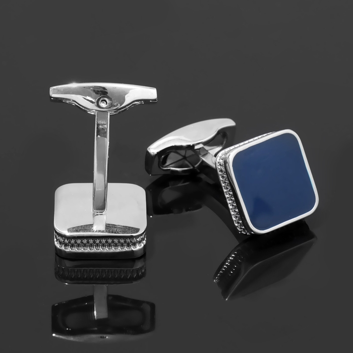 Запонки медные «Квадрат» классический, цвет синий в серебре