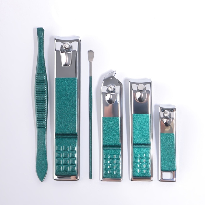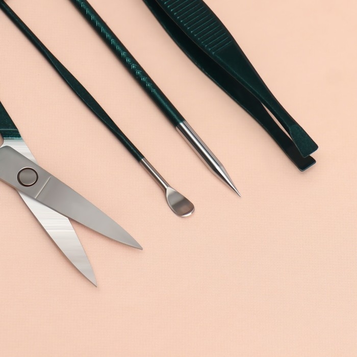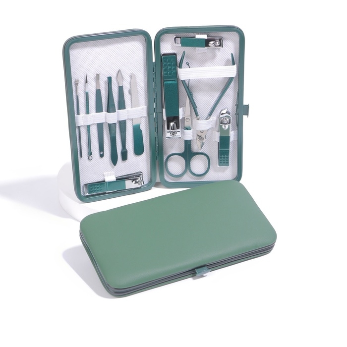 Набор маникюрный, 12 предметов, в футляре, цвет изумрудный