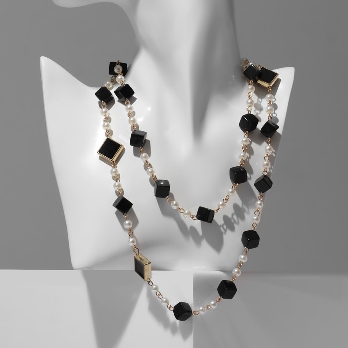 Бусы с жемчугом «Галантность», цвет чёрно-белый в золоте, 80 см