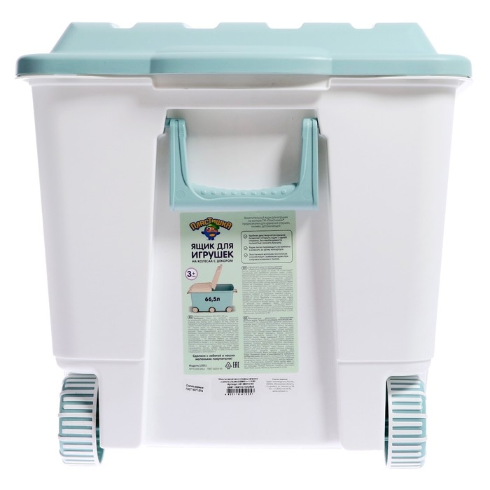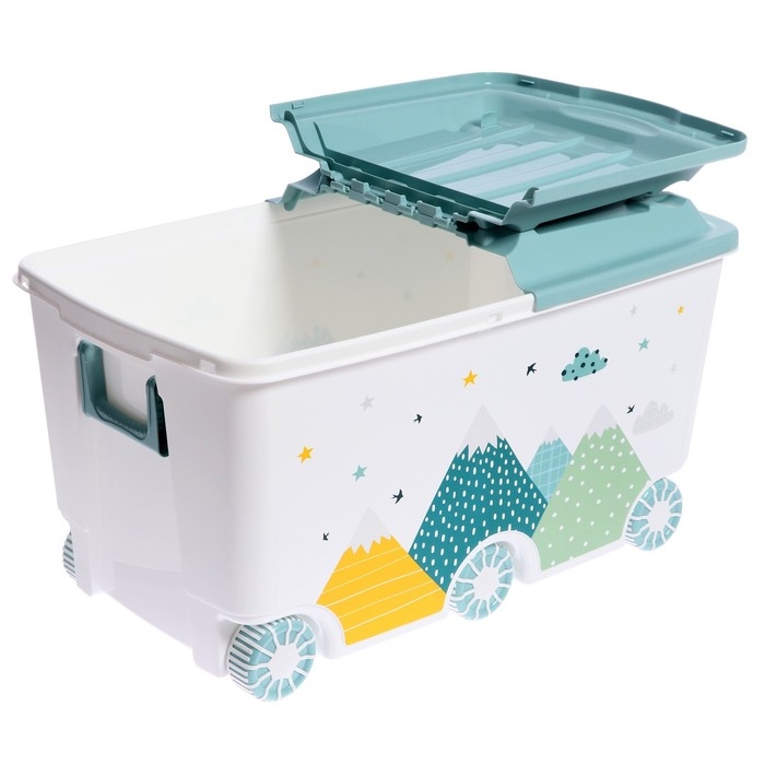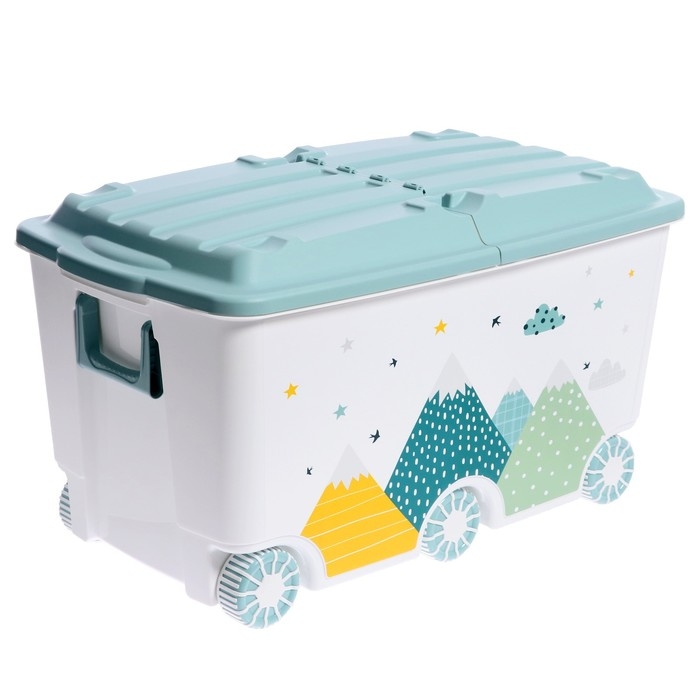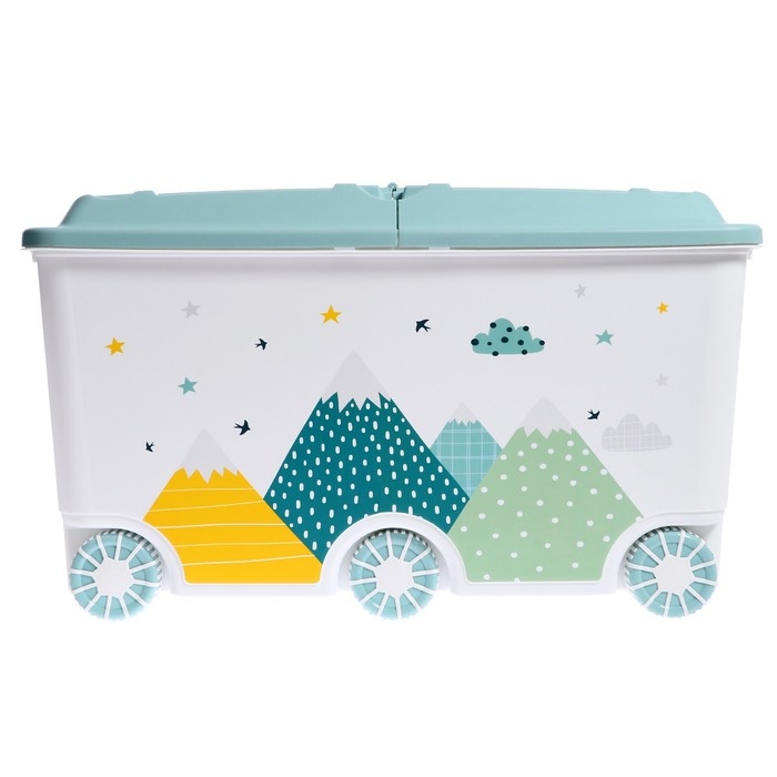 Ящик для игрушек на колесах «Горы», с декором, 685 × 395 × 385 мм, цвет светло-голубой