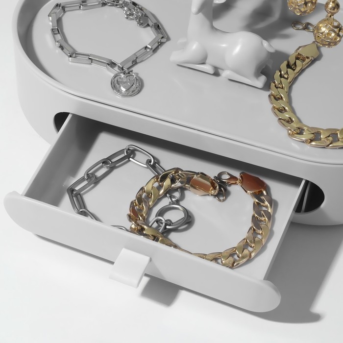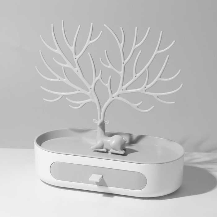 Подставка для украшений «Олень», овальная подставка, 26×25 см, цвет бело-серый