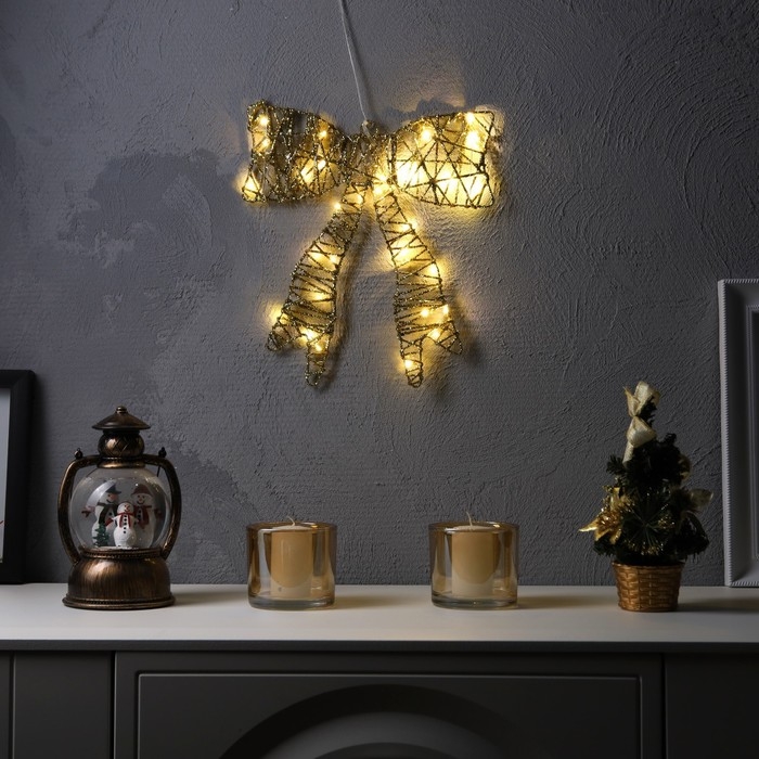 Светодиодная фигура «Бант» 27.5 × 30 см, металл, батарейки ААх2 (не в комплекте), свечение тёплое белое