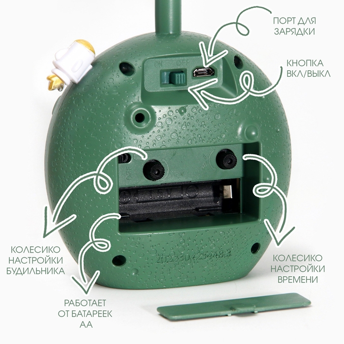 Часы будильник настольные с подсветкой представлены в ярком дизайне в форме луны - полумесяца, они отлично впишутся в ваш интерьер. Интерьерные часы со светильником станут прекрасным декором для дома и дачи, их можно поставить как на прикроватную тумбочку в спальне, детской комнате, гостиной так и на стол или на комод в зале, холле или на кухне. Особенностью данного настольного будильника является наличие подсветки. На циферблате изображены яркие разноцветные арабские цифры и три стрелки, легко читаются, по ним ребенку будет удобно учиться определять время. Часы можно использовать в качестве ночника или офисной лампы на столе школьника. На задней панели помимо отсека для батарейки типа АА (в комплект не входит) находятся переключатель включения/выключения будильника, колесики чтобы настроить текущее время и время пробуждения, а также кнопка для включения/выключения подсветки.