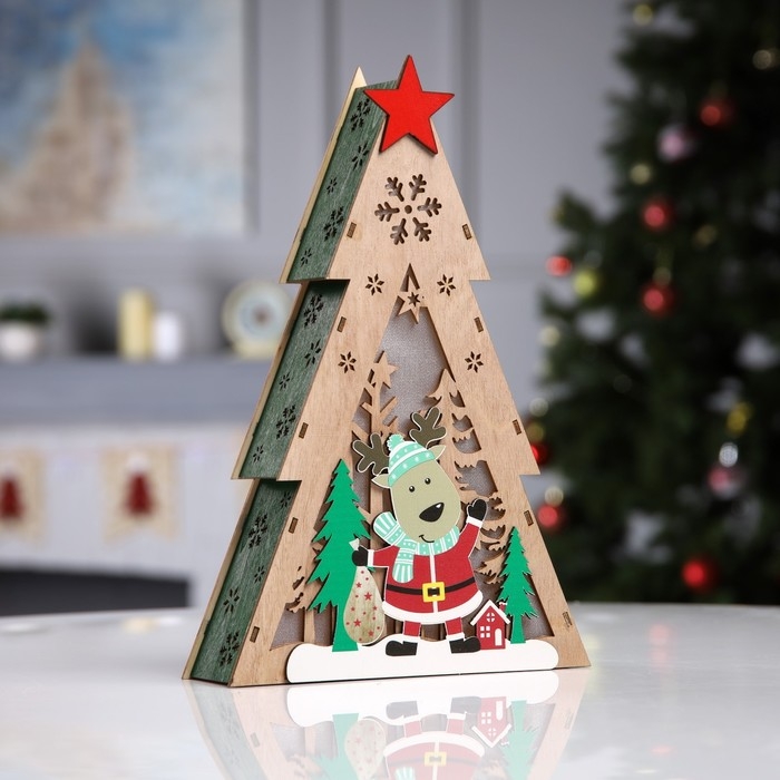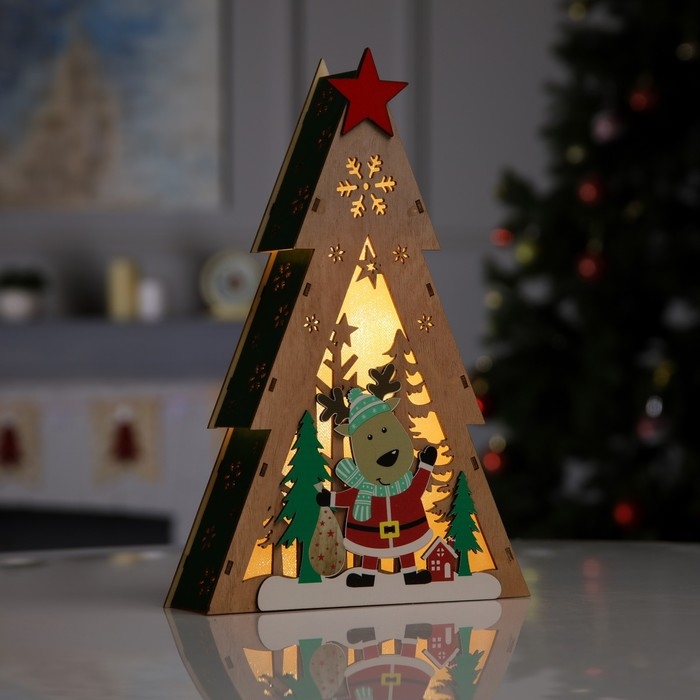 Светодиодная фигура «Олень с подарками» 20 × 30 × 5.5 см, дерево, батарейки AAAх2 (не в комплекте), свечение тёплое белое