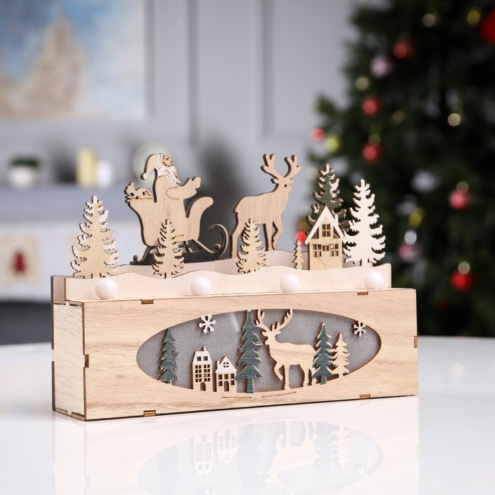 Светодиодная фигура «Новогодняя ночь» 24 × 17 × 6 см, дерево, батарейки AAAх2 (не в комплекте), свечение тёплое белое