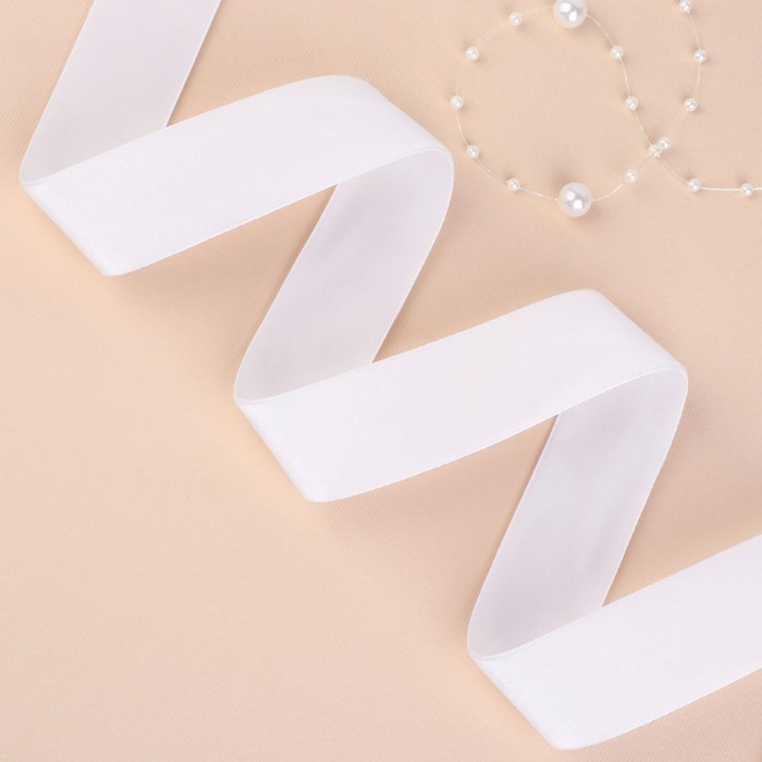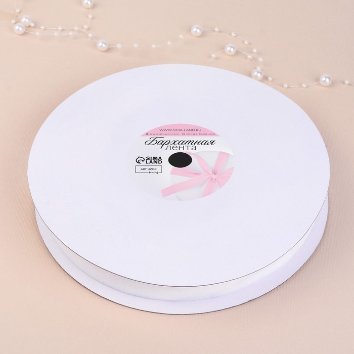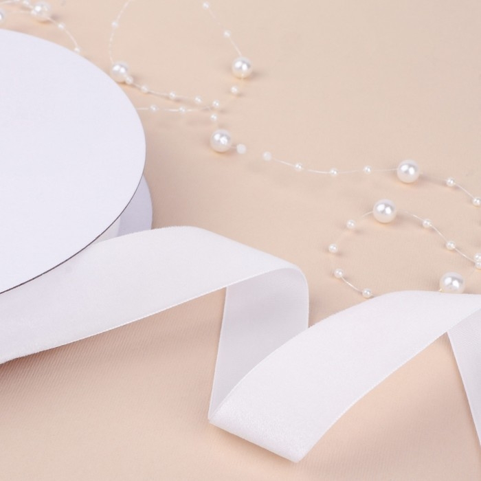 Лента бархатная, 25 мм, 18 ± 1 м, цвет белый №01