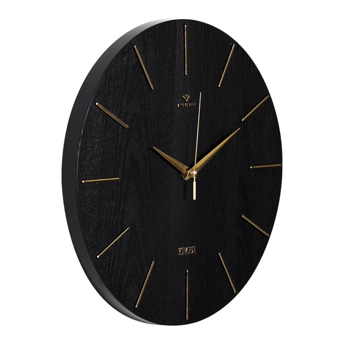 Часы настенные, интерьерные, бесшумные, d-30 см, черные с золотом