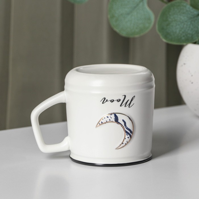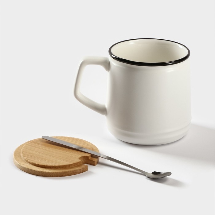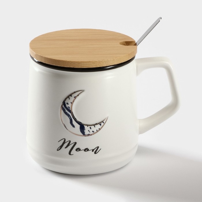 Кружка керамическаяс крышкой и ложкой Moon, 350 мл, цвет белый