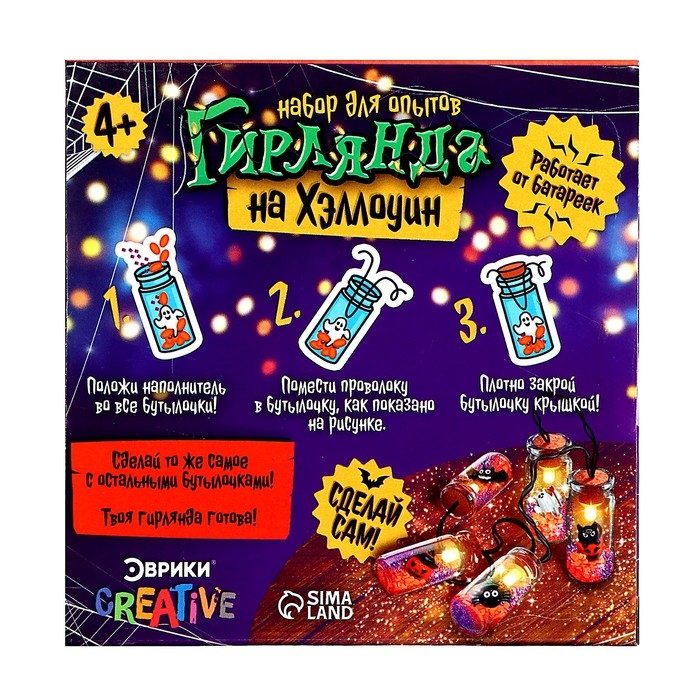 С набором для опытов «Гирлянда на Хэллоуин» вы не только создадите стильный аксессуар для интерьера или вечеринки, а ещё сможете проявить фантазию и раскроете свой творческий потенциал!