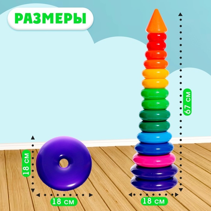 Пирамидка, с конусом, 15 колец