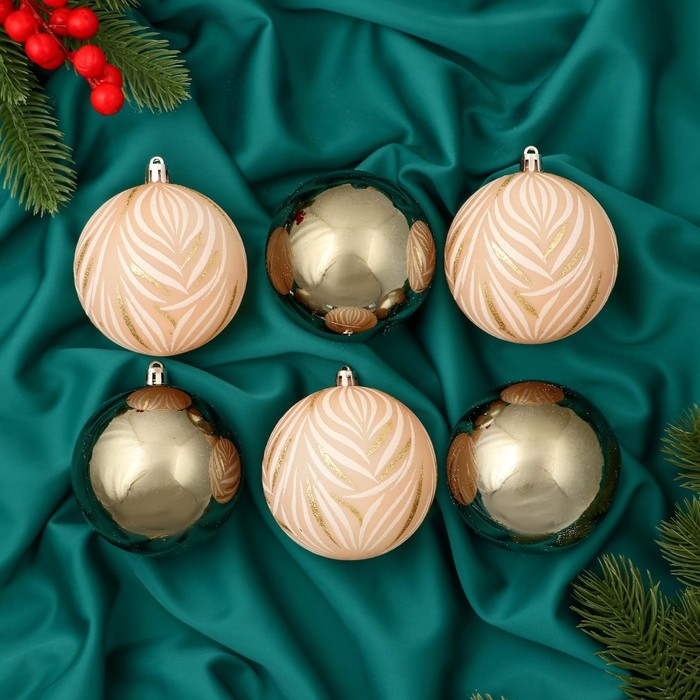 Набор шаров пластик d-7,5 см, 6 шт "Морозная росшивь" штрихи, микс