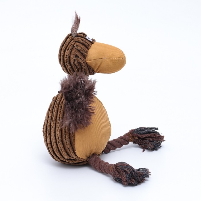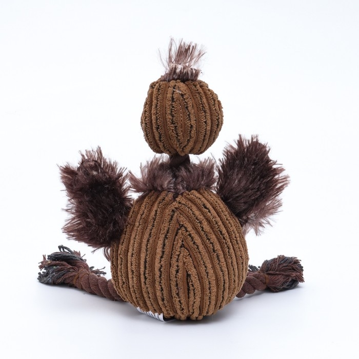 Игрушка мягкая для собак "Пёс" с пищалкой и канатом, 39 х 11 см, коричневая