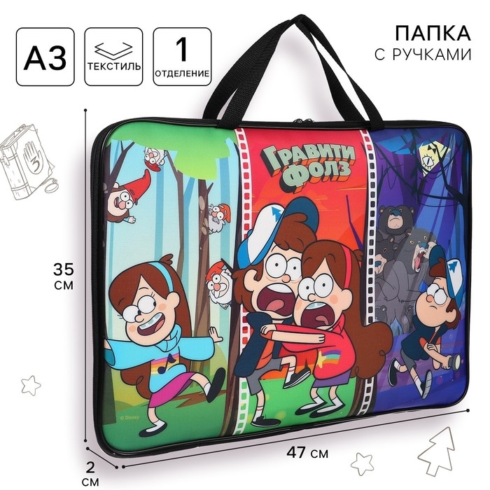 Папка с ручками текстильная А3, 20х470х350 мм, Гравити Фолз