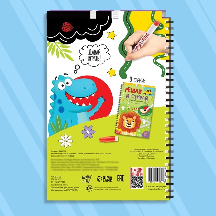 - На плотных гладких страницах удобно выполнять задания маркером на водной основе (входит в комплект).
