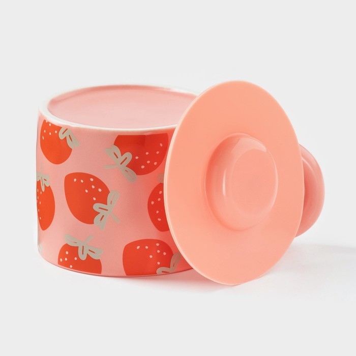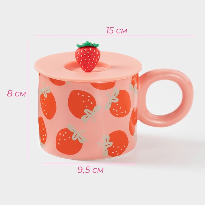 Кружка керамическая с силиконовой крышкой Доляна «Клубника», 350 мл, цвет красный