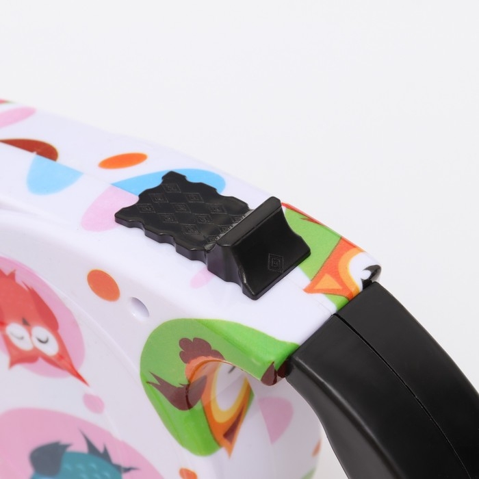 Рулетка с поводком-лентой, резиновая ручка, 5 м, вес животного до 15 кг, совы