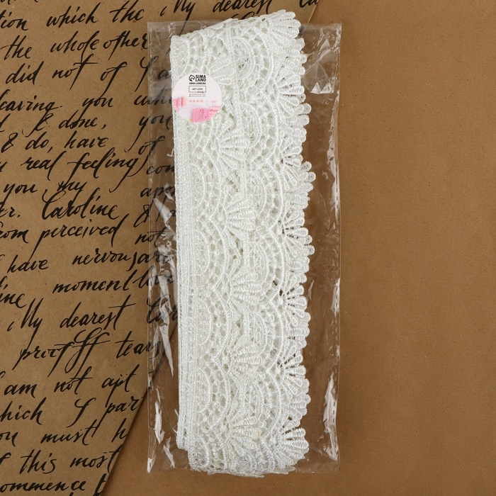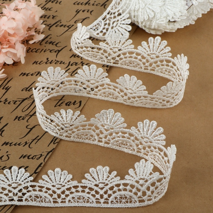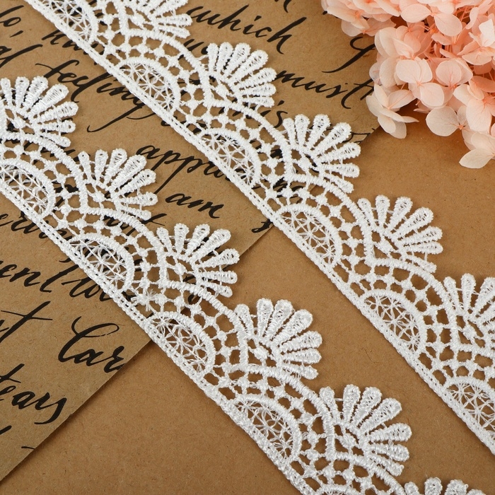 Кружево гипюровое, 40 мм × 9 ± 0,5 м, цвет белый