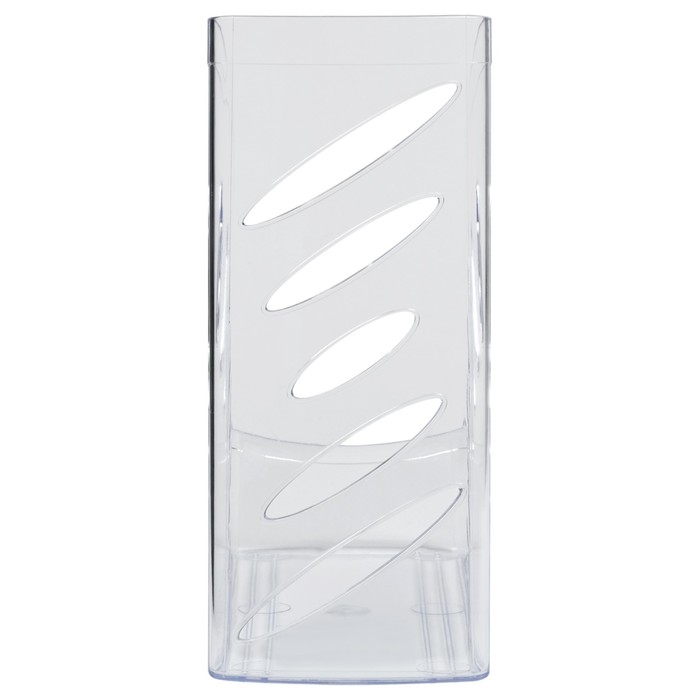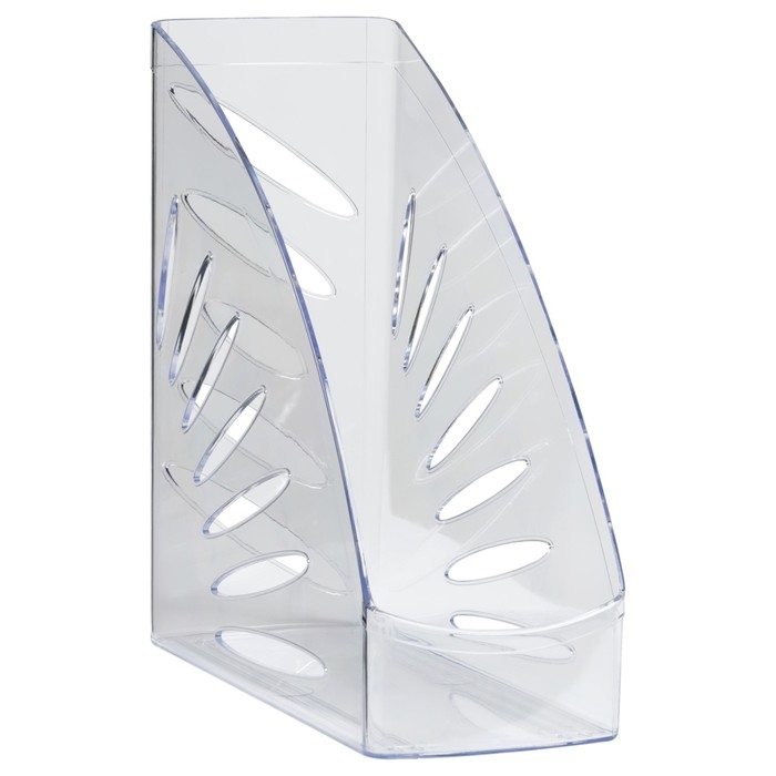 Лоток для бумаг вертикальный предназначен для хранения документов формата А4. Оригинальный дизайн. Устойчивый, вместительный и прочный корпус лотка изготовлен из качественного полистирола. Вмещает до 900 листов. Размеры изделия - 260 х 245 х110 мм. Индивидуальная упаковка - пакет. Цвет лотка - прозрачный.