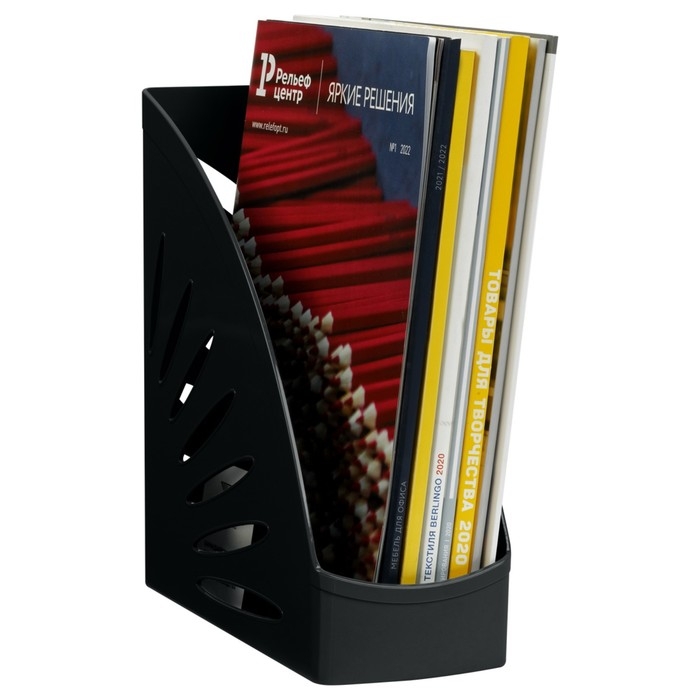 Лоток для бумаг вертикальный предназначен для хранения документов формата А4. Оригинальный дизайн. Устойчивый, вместительный и прочный корпус лотка изготовлен из качественного полистирола. Вмещает до 900 листов. Размеры изделия - 260 х 245 х 110 мм. Индивидуальная упаковка - пакет. Цвет лотка - чёрный.
