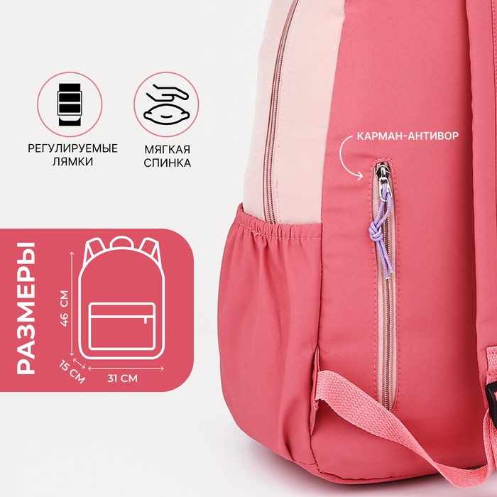 Рюкзак школьный на молнии, 4 наружных кармана, цвет розовый