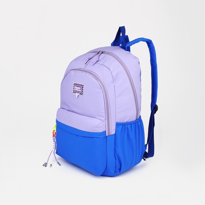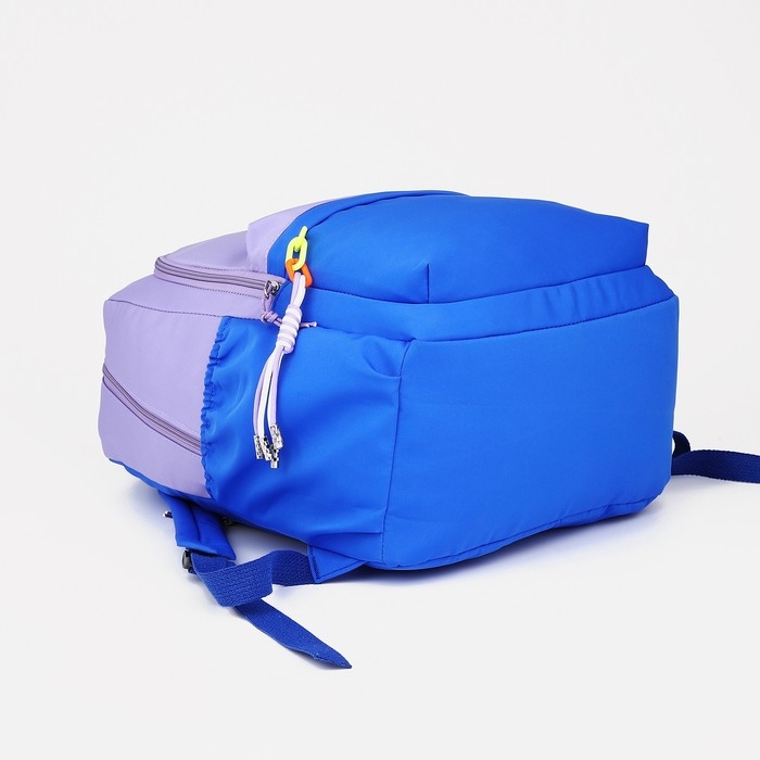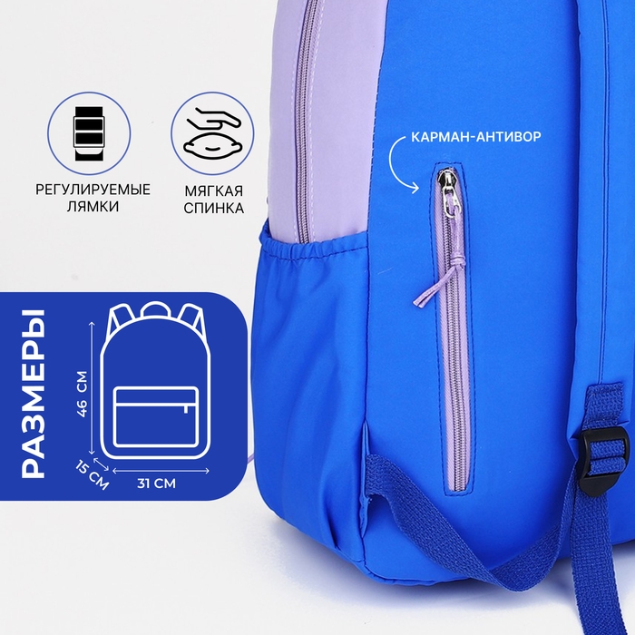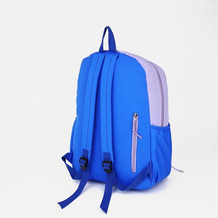 Рюкзак школьный на молнии, 4 наружных кармана, цвет сиреневый/синий