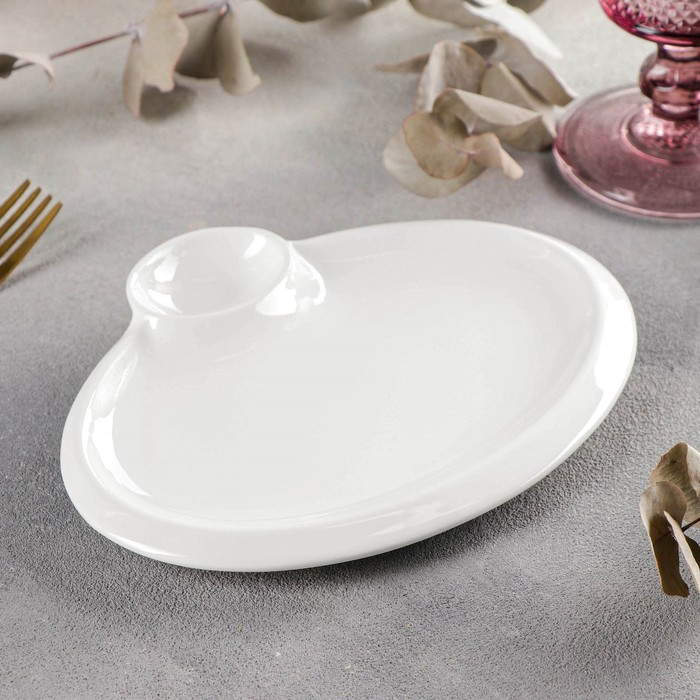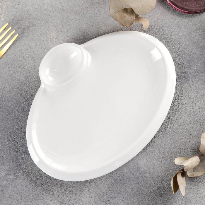 Блюдо фарфоровое с соусником Wilmax Teona, d=20 см, цвет белый