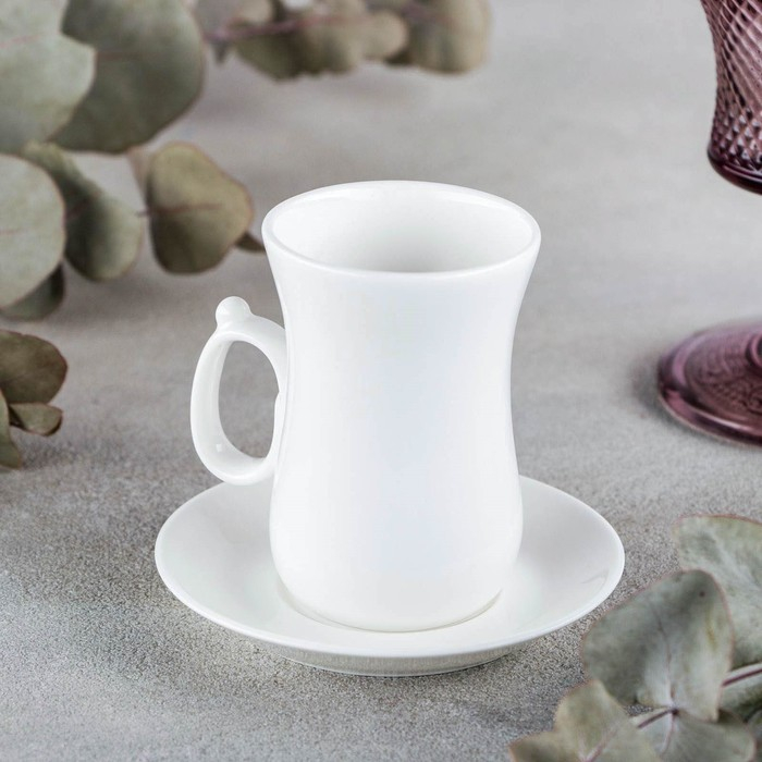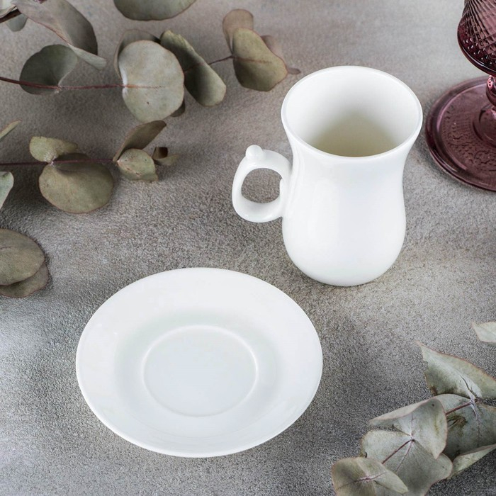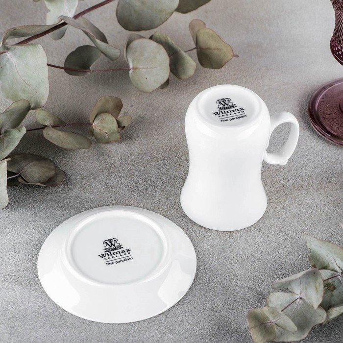 Кофейная пара фарфоровая Wilmax, 2 предмета: кружка 120 мл, блюдце d=10,2 см, цвет белый