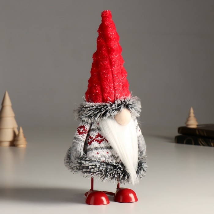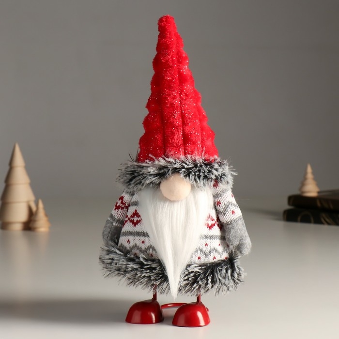 Кукла интерьерная "Дед Мороз в вязаном кафтане с узорами" 26 см