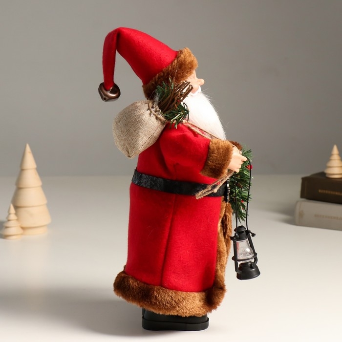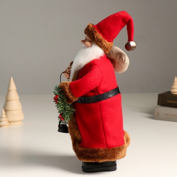 Кукла интерьерная "Дед Мороз с подарками, веночком и фонариком" 37 см
