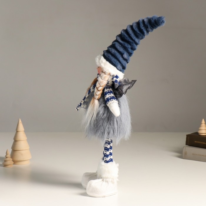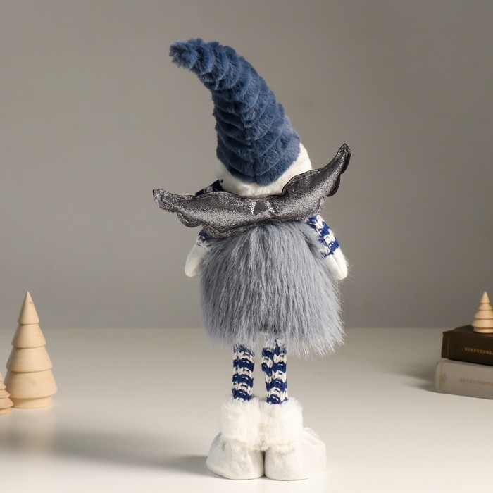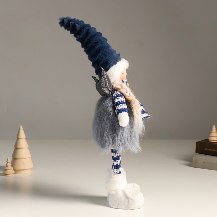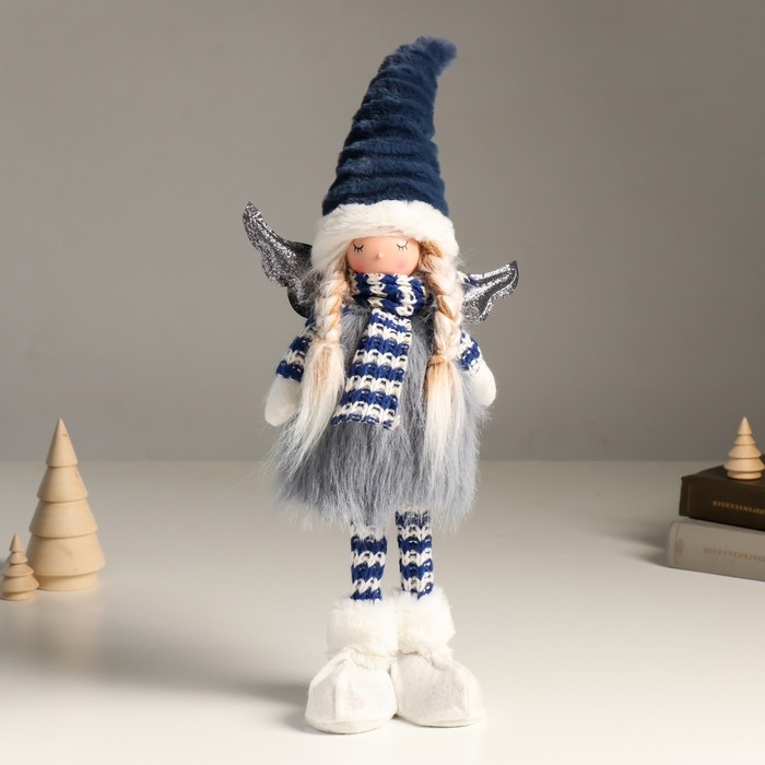 Кукла интерьерная "Ангелочек в серо-синем наряде, серебристые крылья" 44 см