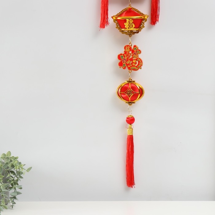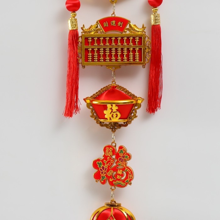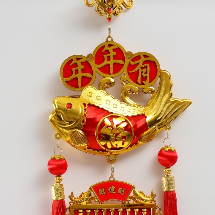 Подвеска пластик, текстиль "Рыба Юй и счеты - На богатство" 20х100 см