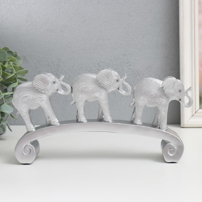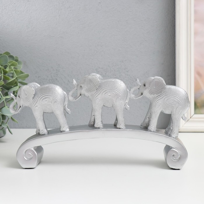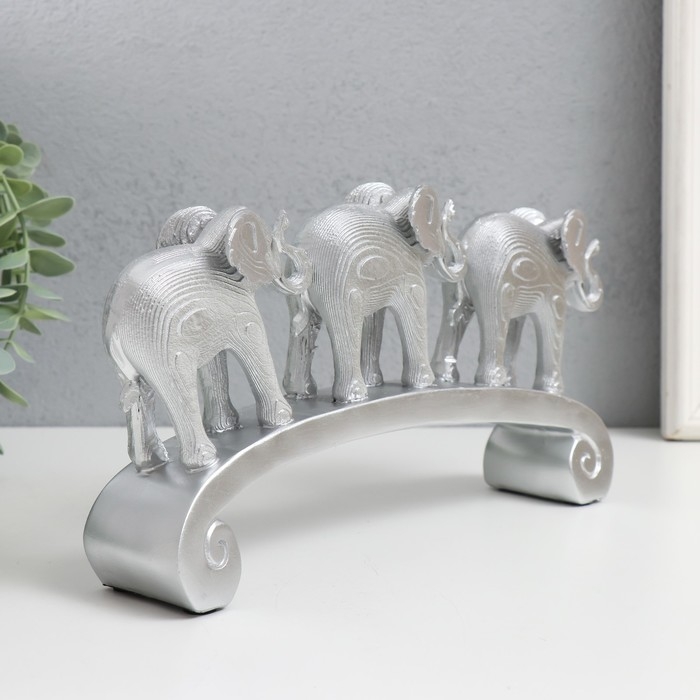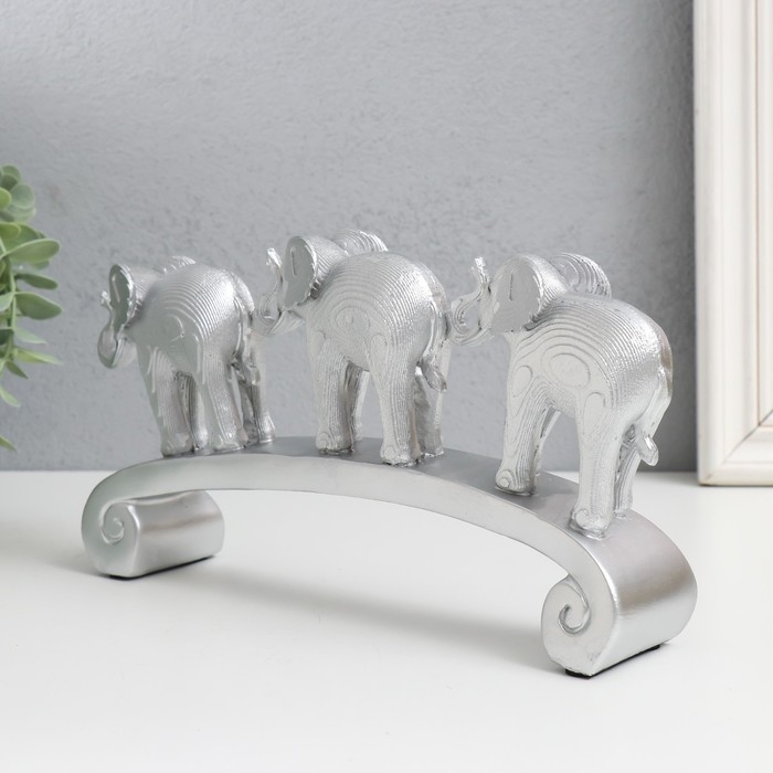 Сувенир полистоун "Три серебристых слона на дуге, слои" 26х5,5х13 см