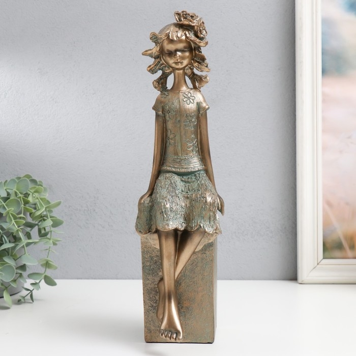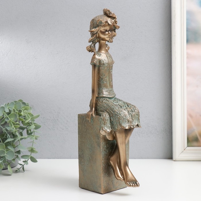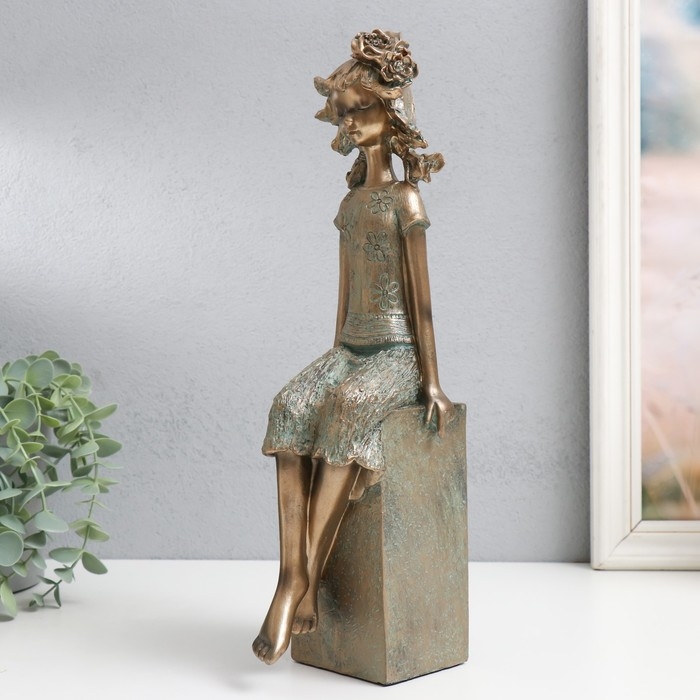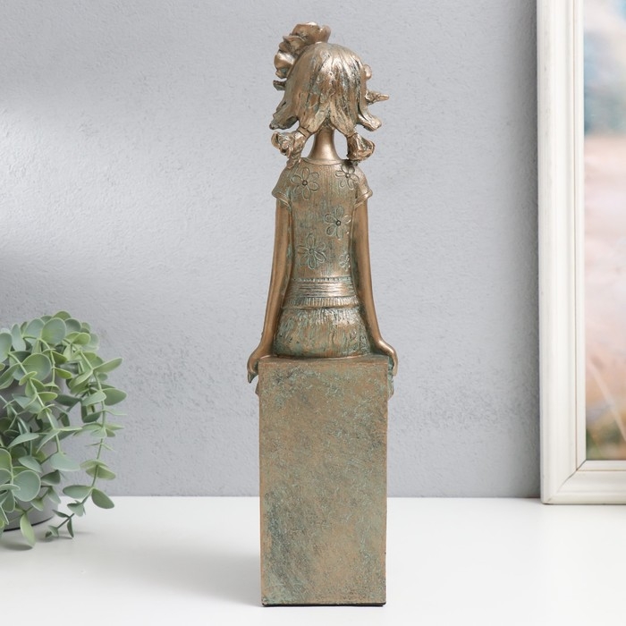 Сувенир полистоун "Девочка на кубе, с цветком в волосах" под бронзу 9,5х12х34 см