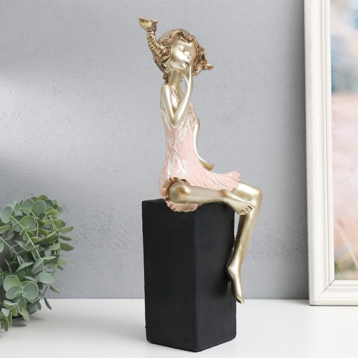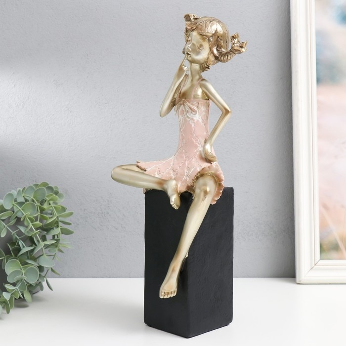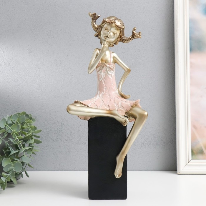 Сувенир полистоун "Девочка на кубе, с косичками" бело-золотой 15х10х37 см